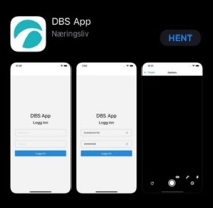 Appen hentes fra hhv. App Store (for Apple telefoner) eller Google Play (for Android telefoner). Søk med teksten «DBS App»